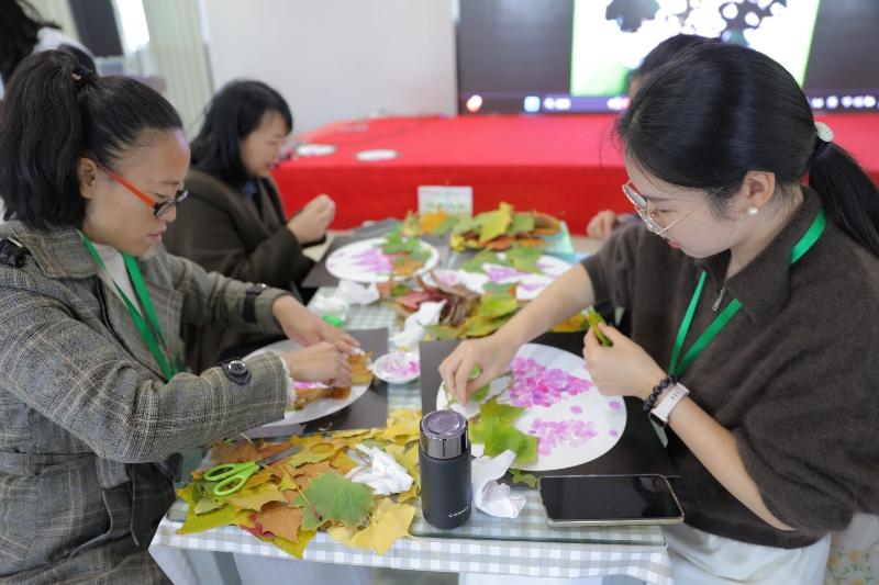 被称为“现代剪花娘子”的教师王华则带领学员们用树叶进行艺术创作。学员们用清晨收集的树叶加入这场“魔法派对”,拼成了可爱的小动物、美丽的风景。一场有趣的“一叶知秋”魔法拼图秀热闹上演。