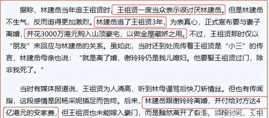 彼时王祖贤刚刚和齐秦分手,林建岳得知这个消息后想要趁虚而入,为了拒绝已有家庭的林建岳,王祖贤公开表示“我很讨厌林建岳”。